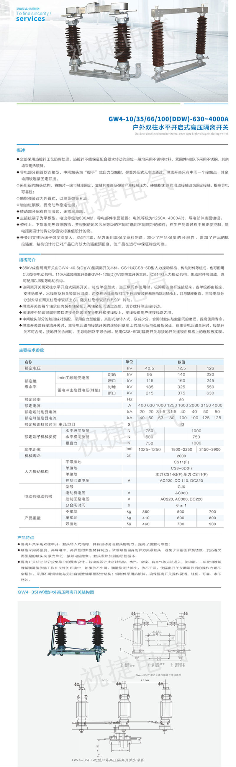GW4-10-4000A户外双柱水平开启式高压隔离开关