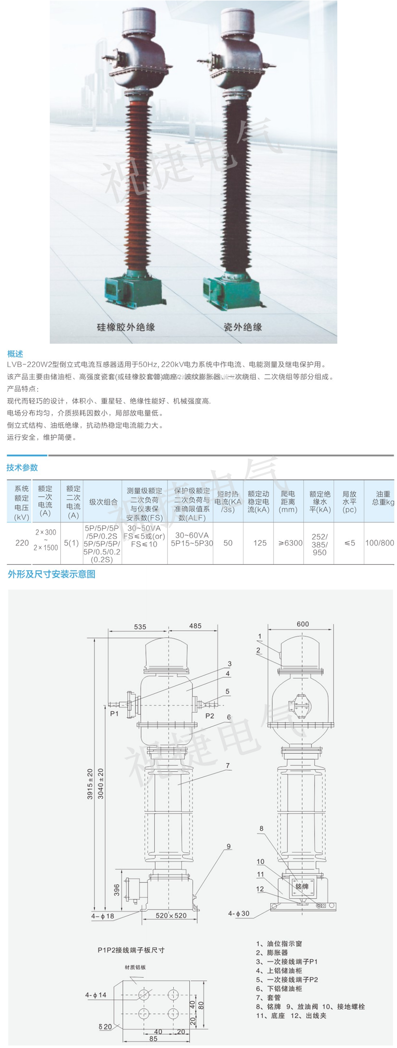 LVB-220W2油浸式倒立式电流互感器