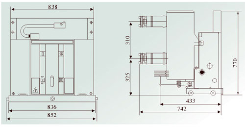 ZN63-2450Hz24kV该断路器采用操动机构与断路器本体一体式设计,既可做为固定安装单元,也可配有专用推进机构,组成手车单元作用。