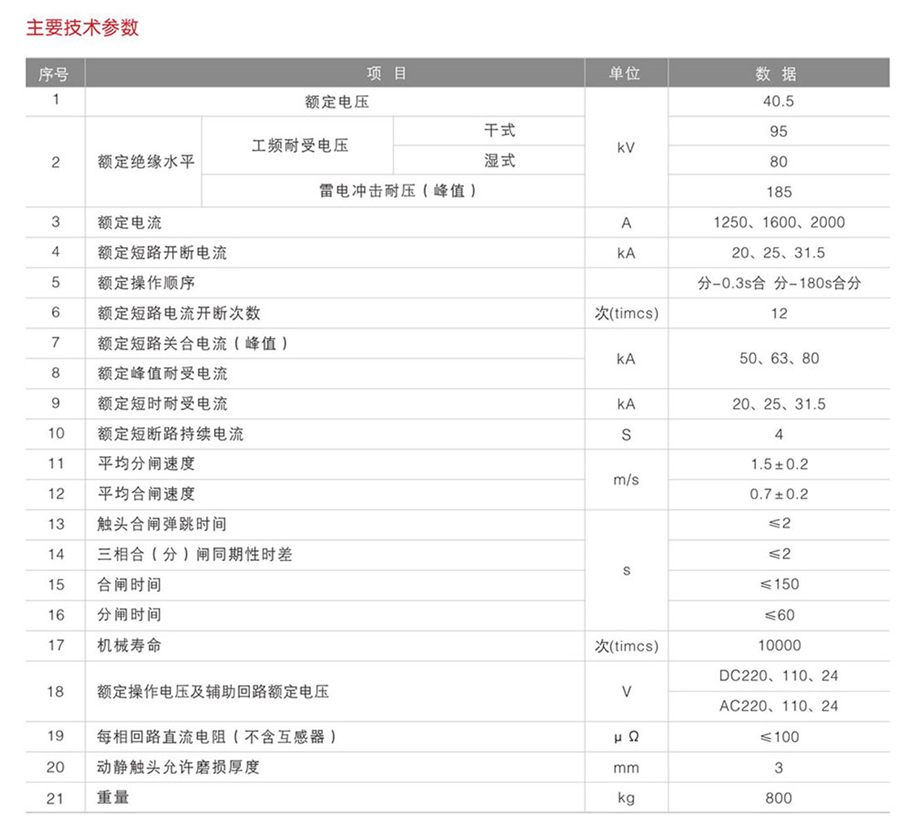 采用真空灭弧,开断能力强,电寿命长,机械寿命次b. ;